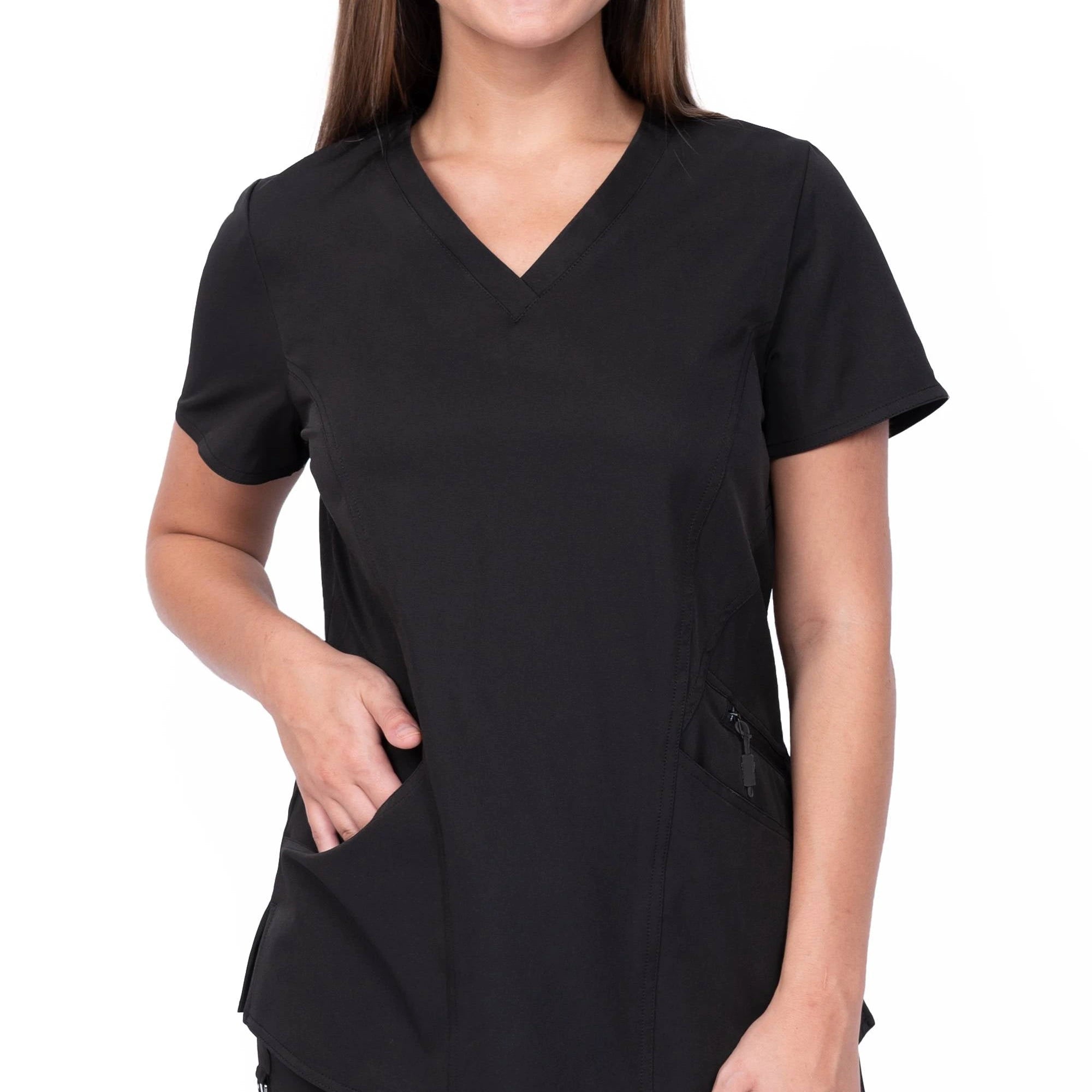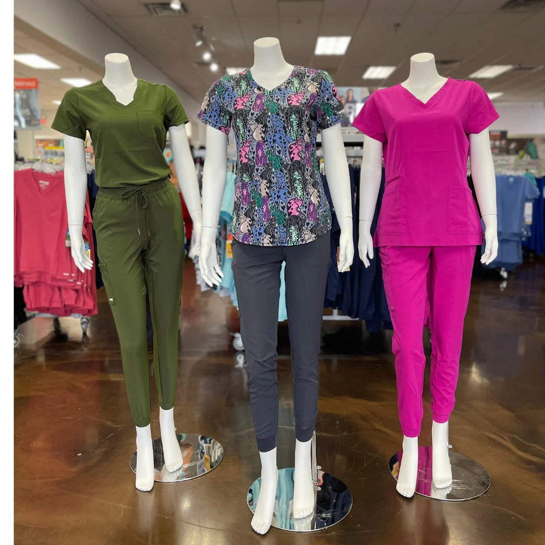 Flattering, "fashion-forward" designs and premium performance fabrics, offering healthcare professionals a stylish, modern alternative to traditional boxy scrubs.