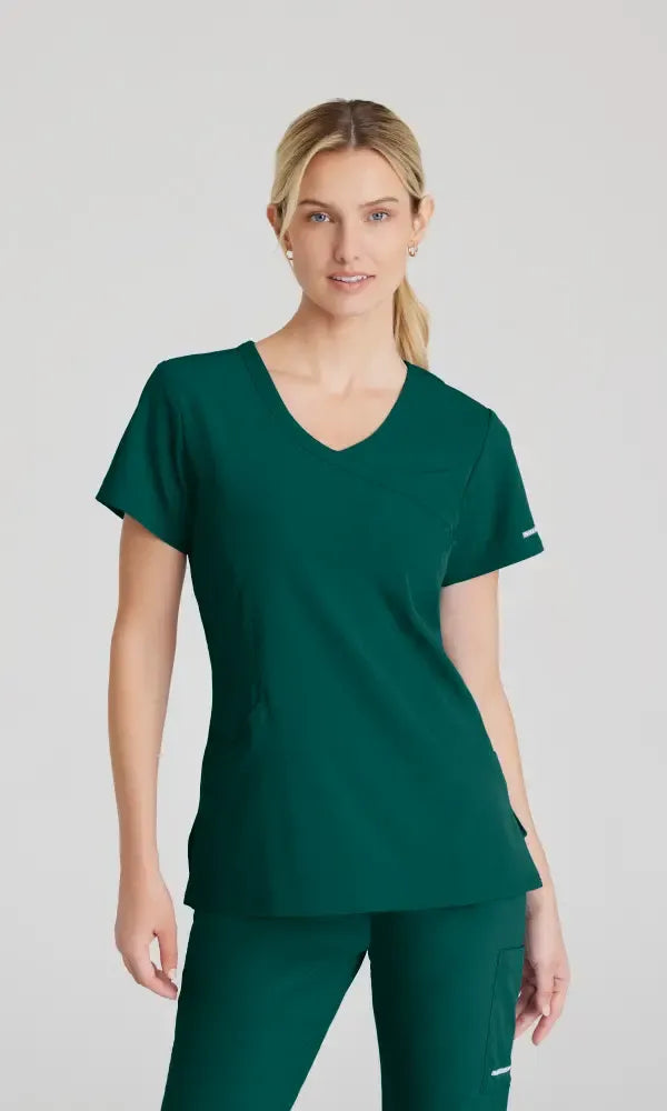 Everyone needs that go-to scrub top: one that fits like a glove, keeps you from getting sweaty, and comes in tons of colors. This is the one! Made with Skechers eco-friendly, moisture-wicking fabric, Reliance has a chic mock wrap style and anti-wrinkle technology that keeps you looking fresh as a daisy.